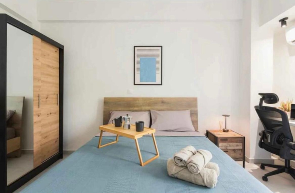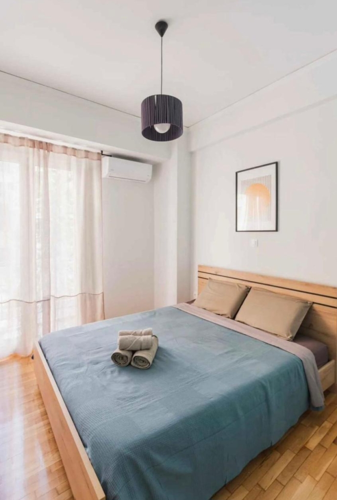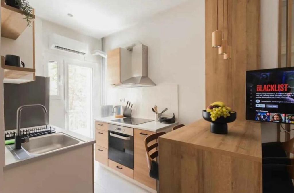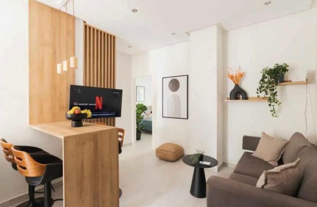 Apartment for sale in Neos Kosmos, Greece. Area Size: 54m². This apartment is located on 1st floor including the following: 2 bedrooms, front and rear balconies, and is equipped with everything you need. As it operates as an Airbnb with a 95% occupancy rate, it is advised for both owner occupancy and as an investment.